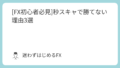 FX【コスト徹底比較】FXTFのスプレッドは本当に狭い?「FXTFでも」勝てる理由 FX取引において、目に見える利益と同じくらい重要なのが「取引コスト」です。特に取引回数の多い中上級者やスキャルピング勢にとって、スプレッドの僅かな差が月間の収支を大きく左右します。「国内口座は制限が多い」というイメージを持つ方もいるかもしれ... 2026.02.09FX基礎知識